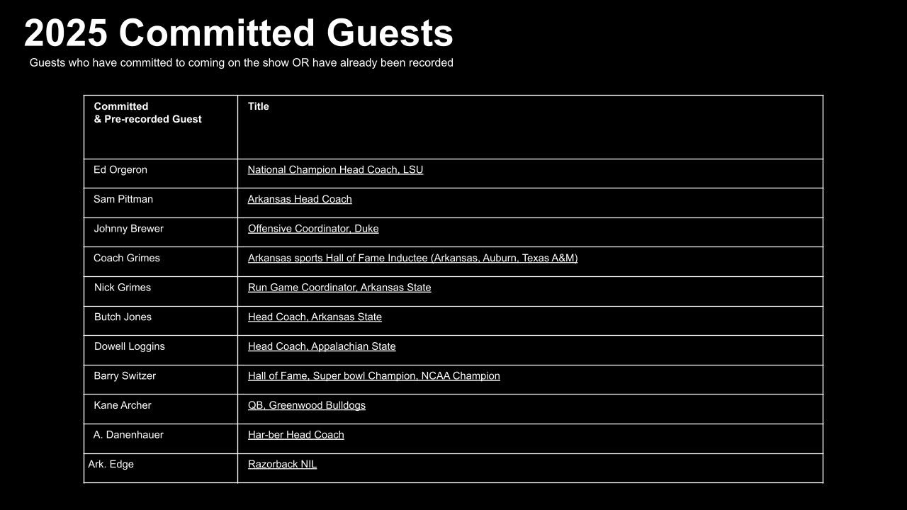 Our guests? None other than the top names synonymous with the state's athletic legacy. From revered coaches and celebrated athletes to iconic figures who've etched their names in Arkansas sports lore, each episode features exclusive interviews, rowdy conversations, and behind-the-scenes stories you won't hear anywhere else.